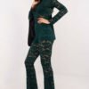 Elegant lace bell-bottom pants, designed for special occasions such as parties and formal outings. A high-waisted model with wide legs that beautifully accentuate the silhouette and give the outfit a fashionable, refined look. The upper part of the pants has a delicate lining, providing comfort and discretion. The lace material with a varied texture, made of a combination of polyester, viscose, and elastane, adds lightness and elegance to the pants. Without fastening and pockets, the pants have a minimalist cut, perfect for stylish evening outings.