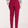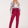 Long pants, slightly tapered at the bottom. Pleated waist and a 3 cm wide elastic band sewn in. Belt with a decorative metal buckle in gold color. Pockets in side seams.