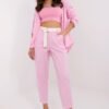 Elegant and comfortable women’s fabric trousers, perfect for everyday wear and work. Made of high-quality cotton with elastane, they provide comfort and perfect fit to the silhouette. Smooth material makes them versatile and easy to style. The model has a high waist that emphasizes the waist, and straight legs that give a classic and timeless look. Side slip pockets add functionality, and a buttoned fabric belt allows for a perfect fit at the waist and adds a stylish accent. A great choice for both the office and everyday outings, combining elegance with comfort!