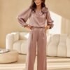 Elsa pants are made of delicate, satin material that provides incredible comfort to wear, but also adds elegance to any outfit. The pants have loose and wide legs, giving them a modern and fashionable character. The high waist and built-in wide belt beautifully emphasize the waist, visually slimming the silhouette. Side pockets and a zipper built into the side of the pants make them not only stylish, but also practical. Elsa pants are the perfect choice for various occasions, from formal business meetings to evening outings. They can be perfectly paired with an elegant shirt and heels for more formal meetings, or with a loose sweater and sneakers for more casual occasions.