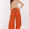 Flared pants are a perfect choice for everyday stylizations. Made of smooth material, with a high waist that emphasizes the waist and provides comfort. Their wide legs with a slit give lightness and freedom of movement. The pants have a tie at the waist, allowing for a perfect fit to the figure. They are characterized by a minimalist design without pockets, which adds elegance and simplicity. Perfect for casual meetings and everyday wear, boho-style flared pants are a comfortable and fashionable wardrobe item.