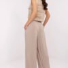 Palazzo pants are the perfect choice for everyday stylizations, combining comfort with elegance. Made of viscose, providing softness and breathability, they are perfect for both warmer days and cooler evenings. Wide legs give them a loose, nonchalant look that fits well with a casual style. The practical slip pockets are an additional asset, increasing the functionality of the pants. The high waist emphasizes the waist and visually elongates the silhouette, making these pants very flattering for every figure. Drawstrings for tying allow for a perfect fit at the waist, and the lack of fastening guarantees comfort when wearing. The simple, uniform design makes these pants a versatile wardrobe piece that can easily be paired with a variety of tops and accessories. This is a universal proposal for women who value fashion and comfort in everyday life.