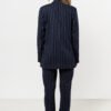 Linen cigarette trousers in stripes These trousers are the perfect combination of style and comfort. The tapered cut subtly highlights the silhouette, while the breathable linen ensures comfort throughout the day. The button and zip fastening adds elegance, and the delicate stripes make them suitable for both casual and formal outfits. Pair the linen trousers with a vest or blazer made from the same fabric, and you will create an elegant summer look.
