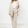 These pants are the perfect combination of style and comfort. The tapered cut subtly accentuates the figure, while the breathable linen ensures comfort throughout the day. The button and zip fastening adds elegance, and the delicate stripes make them suitable for both casual and formal outfits. Pair the linen pants with a vest or blazer made from the same fabric to create an elegant summer look.