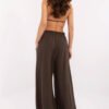 Light and stylish muslin women’s pants are the perfect choice for warm days. Made of breathable cotton, they guarantee comfort and natural freedom of movement. The palazzo style with wide legs gives them an elegant yet casual character, perfect for everyday wear. The elastic waistband ensures a comfortable fit, accentuating the waist and increasing comfort. Side pockets add practicality, while the smooth pattern makes the pants versatile and easy to style. They pair perfectly with both a fitted top and a looser shirt, creating light and fashionable outfits for various occasions.