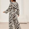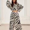Long Livia pants with wide wide-legs are a perfect choice for summer days, combining comfort and trendy design. Their loose fit provides freedom of movement and comfort throughout the day. Pants in an eye-catching animal print are a standout element of any outfit. Made of a lightweight blend of viscose and linen, they are breathable and pleasant to the touch, and the comfortable waistband guarantees a perfect fit and comfort, even on hot days.