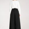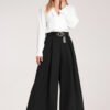 Palazzo pants with a black belt with a buckle. Made of delicate fabric. High-waisted pants. Elastic at the waist with wide legs. Inserted pockets on the sides.