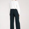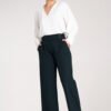 Elegant simple 7/8 trousers. Trousers with a high waist and a decorative panel fastened with two buttons. Delicate pleats at the front.