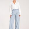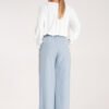 Elegant high-waisted trousers. Loose, straight cut. Elastic band at the back. Trousers with practical pockets and belt loops.