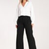 Elegant high-waisted trousers. Loose, straight cut. Elastic band at the back. Trousers with practical pockets and belt loops.