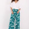 Light and comfortable women’s trousers with a casual character are the perfect choice for everyday styling. Made of breathable, skin-friendly viscose, belonging to the category of ecological clothing, they combine wearing comfort with care for the environment. High waist and a tie at the waist ensure a great fit and emphasize the waist, while wide legs give the silhouette lightness. Decorative print adds character, and side pockets increase functionality. This is an excellent proposition for women who appreciate style, comfort, and conscious choices.