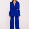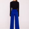Classic women’s trousers made of smooth suit fabric with a matte finish are an elegant and timeless proposal for many stylizations. The material retains its structure, and the pressed creases on the legs add a refined character to the whole. The model with a medium waist fits at the waist and hips, and the wide leg from the thigh down ensures comfort and freedom of movement. The button and concealed zipper closure at the front guarantees comfort, and the side pockets add functionality. The trousers reach the ground, which, combined with the wide leg, visually lengthens the silhouette and emphasizes the elegant character of the entire outfit. The lack of lining makes the model light and comfortable to wear. Designed and made in Poland, for women who appreciate classic style, comfort, and excellent craftsmanship.