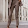 Cigarette pants KIARA Fango are the perfect choice for women who appreciate elegance and comfort. Made of high-quality materials, these pants are perfect for both everyday wear and more formal occasions. Their minimalist design makes them easy to combine with a variety of stylizations, making them an essential element of every modern woman’s wardrobe. Thanks to the use of 95% viscose and 5% elastane, cigarette pants provide incredible comfort and flexibility, resulting in a perfect fit to the silhouette. The material is pleasant to the touch and breathable, so even on warmer days, wearing them will not be a problem. These cigarette pants have been designed with people in mind who value both style and freedom of movement. KIARA pants are available in three sizes, allowing for easy customization to individual customer needs. Cigarette pants KIARA Fango are characterized by a universal color that easily matches with different shades of blouses, sweaters, and accessories. They are a perfect base on which you can build many original stylizations, from classic to more casual ones. They go well with both high heels and sneakers, making them a versatile choice for any occasion. In summary, cigarette pants KIARA Fango are an elegant and comfortable clothing item worth having in your wardrobe. Thanks to carefully selected materials and attention to detail, they will appeal to even the most demanding customers. Choose quality and style, choose KIARA cigarette pants!