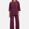 Women’s pants made of ribbed fabric weighing 250 g, which is soft, elastic, and pleasant to wear. The model has no pockets or lining, with a practical elastic waistband providing comfort and a tailored fit. The loose fit, knitted pants are fitted at the waist and hips, and then fall loosely, ensuring comfort and lightness. The long, straight legs slightly widen towards the bottom, slimming the silhouette and adding elegance. The mid-rise waist ensures a good fit and emphasizes the waist, while the full length to the ground gives them a modern, leg-lengthening effect. Designed and made in Poland from fabric produced in Łódź, this combination offers comfort, quality, and timeless style.