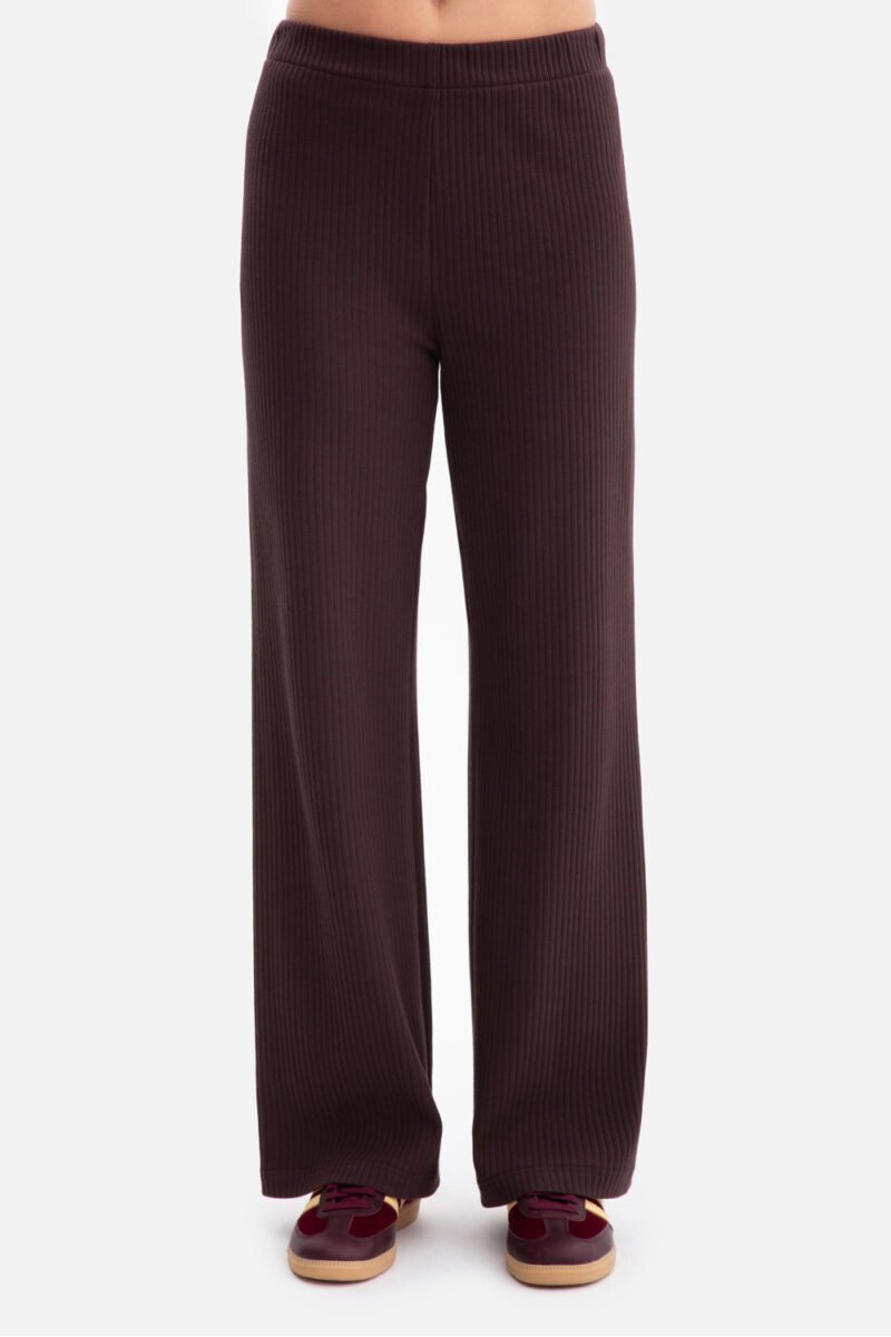 Women’s trousers made of ribbed fabric with a weight of 250 g, which is soft, elastic and pleasant to wear. The model has no pockets or lining, with a practical elastic waistband ensuring comfort and a perfect fit to the silhouette. The loose fit, knitted trousers are fitted at the waist and hips, and then fall loosely, guaranteeing comfort and lightness. Long, straight legs slightly flare towards the bottom, slimming the silhouette and adding elegance. The mid-rise waist makes the trousers fit well and accentuate the waist, while the full length to the floor gives them a modern, leg-lengthening effect. Designed and made in Poland from fabric produced in Łódź, they are a combination of comfort, quality, and timeless style.