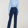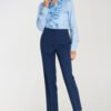 Elegant women’s trousers in a fit cut, tailored to the silhouette, made of high-quality material that ensures comfort. The model has a medium waist and tapered leg ending with a subtle slit on the side, adding a modern character. The trousers have pressed creases at the front and back, emphasizing an elegant, classic cut. Zip and button fastening, classic front pockets and faux back pockets provide practicality and aesthetic finish. Perfect for both office styling and elegant casual outfits.