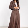 Stylish wide-legged pants combine comfort with elegance. The high waist highlights the waist and visually elongates the silhouette, while the flared legs add lightness and a modern character. The model will work well in both everyday stylizations and in office or more formal outfits. It pairs nicely with a blazer, shirt, or sweater, and practical side pockets increase functionality. The timeless cut allows for creating many stylish combinations and guarantees versatility.