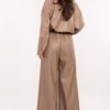 Stylish and comfortable palazzo pants made of high-quality eco-leather (a combination of polyester and polyurethane). The wide-legged model with a high waist beautifully emphasizes the waist, while providing freedom of movement. An elastic band is sewn into the waist, allowing the pants to perfectly fit the silhouette. Additionally, they have a fastened belt that allows you to accentuate the figure and add an elegant touch. The model has side slip pockets and a smooth material surface, giving it a modern, minimalist character. This is an ideal proposal in a casual style, suitable for both everyday wear and work, guaranteeing comfort and a fashionable look throughout the day.