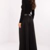 Elegant women’s palazzo pants, perfect for everyday wear and work. Made of a blend of viscose and polyester, they stand out for their smooth structure and comfort. The high waist with an inserted elastic band and fastened belt emphasizes the waist, while decorative pleats add elegance to the whole. Wide legs give lightness to the silhouette, and practical side, slip pockets ensure functionality. This stylish proposal combines elegance with comfort.