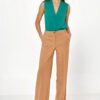 Elegant caramel loose cut trousers will create a cohesive duo with a flowy blouse and oversized blazer in the same color. This model of trousers will visually lengthen the legs, and the high waist will accentuate the waist. The material ensures comfort when wearing.