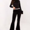 Velvet bell-bottom pants are a stylish proposal for women who like a combination of elegance and a distinctive character. The soft, pleasant to the touch velvet beautifully drapes on the silhouette, and the smooth dominant pattern gives the whole an elegant minimalism. The front of the waist is adorned with subtle jets, which add a unique, party accent to the pants. The model has a medium (regular) waist, which ensures comfortable wearing and beneficially emphasizes the waist. Wide bell-bottom legs visually lengthen the legs and fit into elegant, yet slightly retro inspirations. The pants do not have a fastening, which increases the comfort of use. Made of a blend of polyester and viscose, they are durable, soft, and look exceptionally impressive both in motion and in the light of party spotlights. It is the perfect choice for formal occasions, elegant outings, and parties when you want to look dazzling and stylish.