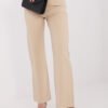 These stylish pants were created with women in mind who value elegance combined with comfort. Made from a high-quality blend of viscose, nylon, and elastane, they provide a perfect fit and comfort throughout the day, regardless of the occasion. The smooth, classic material gives them a timeless look, and the high waist beautifully accentuates the waist and elongates the silhouette. The straight leg cut makes the pants look elegant and stylish, perfect for work, everyday outfits, and formal stylings. The model is fastened with a concealed zipper, emphasizing the neat finish. An additional advantage is the belt fastened at the waist, allowing for a perfect fit and serving as a subtle decorative accent. The characteristic crease at the back of the leg adds sophistication to the pants and emphasizes their elegant character. Universal, comfortable, and timeless, perfect for any outfit where style and comfort matter.