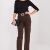These stylish trousers were created with women in mind, who value elegance combined with comfort. Made from a high-quality blend of viscose, nylon, and elastane, they provide a perfect fit and comfort for all day wear, regardless of the occasion. The smooth, classic material gives them a timeless look, and the high waist beautifully accentuates the waist and elongates the silhouette. The straight leg design makes the trousers look elegant and stylish, perfect for work, everyday outfits, and formal stylings. The model is fastened with a concealed zipper, emphasizing the neat finish. An additional advantage is the belt fastened at the waist, allowing for a perfect fit and serving as a subtle decorative accent. The characteristic seam at the back of the leg adds sophistication to the trousers and emphasizes their elegant character. Versatile, comfortable, and timeless, perfect for any outfit where style and comfort matter.