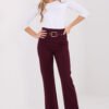 These stylish trousers were created with women in mind who appreciate elegance combined with comfort. Made from a high-quality blend of viscose, nylon, and elastane, they provide a perfect fit and comfort for all-day wear, regardless of the occasion. The smooth, classic material gives them a timeless look, while the high waist beautifully accentuates the waist and elongates the silhouette. The straight leg design makes the trousers look elegant and stylish, perfect for work, everyday outfits, and formal styling. The model is fastened with a concealed zipper, highlighting the neat finish. An additional advantage is the belt fastened at the waist, allowing for a perfect fit and serving as a subtle decorative accent. The characteristic crease on the back of the leg adds sophistication to the trousers and emphasizes their elegant character. Universal, comfortable, and timeless, perfect for every outfit where style and comfort matter.