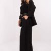 Elegant women’s fabric trousers are a combination of comfort and stylish look, perfect for everyday styling and work. The smooth pattern model makes it easy to combine trousers with various tops, creating both casual and more elegant outfits. The trousers have a high waist with an elastic band, which ensures comfort and a perfect fit to the silhouette. Wide legs guarantee wearing comfort, and side, slip-in pockets add practicality. Additionally, the model is equipped with a fastening belt and subtle lace sewn along the legs, giving the trousers a unique, feminine character. Made of high-quality blend of viscose and elastane, the trousers are soft, flexible, and durable, ensuring comfort throughout the day. It is the perfect choice for women who appreciate elegance combined with comfort and original details.
