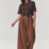 Add a touch of elegance and comfort to your wardrobe with our wide high-waisted trousers with pleats. It’s a perfect choice for women who appreciate style and comfort. The trousers are made of high-quality fabric that drapes beautifully and works perfectly for both everyday wear and more formal stylings. Thanks to the wide leg and subtle pleats, the trousers visually elongate the silhouette, while the decorative belt with a buckle adds a modern character. They pair well with a shirt, blazer, or oversized sweater. This is the perfect model for both work and social gatherings – choose a versatile, timeless cut and understated color scheme that never goes out of style. Made in Italy.