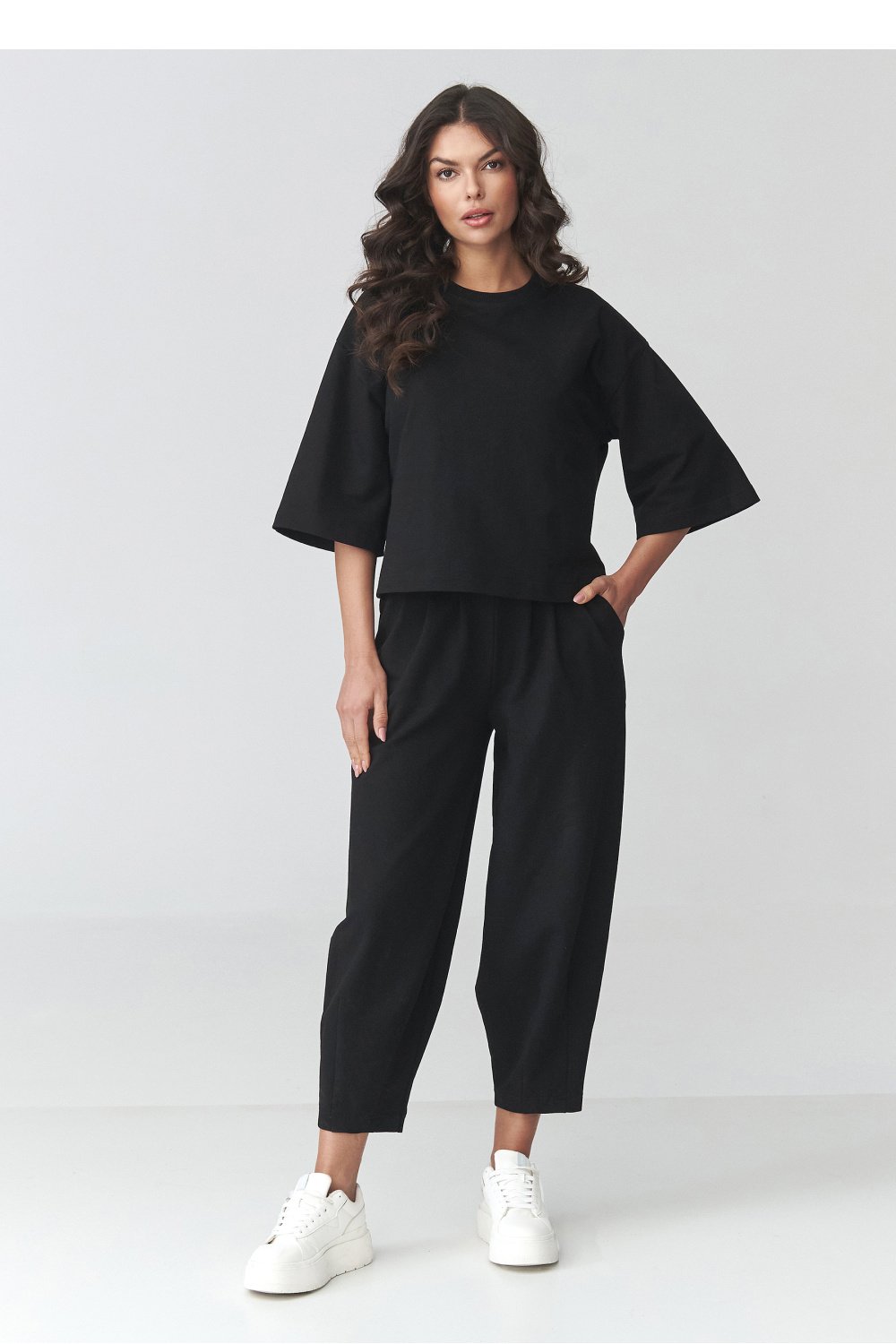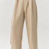 Introduce a touch of elegance and comfort to your wardrobe with our wide high-waisted trousers with pleats. It is a perfect choice for women who appreciate style and comfort. The trousers are made of high-quality fabric that drapes beautifully and will work perfectly for both everyday wear and more formal stylings. Thanks to the wide leg and subtle pleats, the trousers visually elongate the silhouette, and the decorative belt with a buckle adds a modern touch. They will pair perfectly with a shirt, blazer, or oversized sweater. This is an ideal model for both work and social meetings, opt for a universal, timeless cut and understated color palette that never goes out of style. Made in Italy.