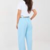 Stylish women’s wide leg jeans trousers that combine comfort with modern style. Made of high-quality cotton with a touch of elastane, they guarantee comfort and freedom of movement throughout the day. The model has a high waist and an elastic band sewn into the waist, which perfectly fits the silhouette without the need for fastening. Pleats on the front add elegance and visually slim the legs. Wide legs emphasize the fashionable character of the trousers and provide lightness to the styling. The trousers are equipped with side slip pockets and a fastened belt, which is a practical and stylish addition. The smooth pattern makes the model perfect for both everyday styling and casual workwear. Universal, comfortable, and stylish – an ideal base for many outfits.