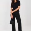 Elegant women’s straight leg material trousers that impress not only with their appearance but also with their comfort of wearing. Made of exceptionally pleasant to the touch material, soft, delicate and smooth like butter, they provide a luxurious feeling on the skin throughout the day. The high-waisted model beautifully accentuates the waist and visually lengthens the silhouette, while the straight legs give the whole a timeless, elegant character. The trousers are fastened with a zip and button, which guarantees a classic and aesthetic finish. Side, slip pockets add functionality without disturbing the line of the cut. Thanks to the smooth pattern and carefully selected blend of polyester, viscose, and elastane, the trousers will work perfectly in everyday, work, and formal stylings. It is a universal base of an elegant wardrobe that is comfortable, stylish, and always in style.