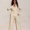 Elegant women’s trousers with wide legs and subtle, vertical stripes stand out with a timeless design that visually lengthens the silhouette and ensures high wearing comfort. Carefully crafted cut combines classic aesthetics with a modern character, creating a versatile base for many stylings. The model was designed and sewn in Poland with attention to detail and the highest quality of workmanship, meeting the expectations of demanding customers. The trousers are fastened with a zipper and equipped with practical, slip-in pockets. They will work perfectly in elegant business stylings with a blazer, as well as in a modern, urban version, paired with a top or shirt.