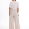 Elegant trousers with wide legs in a modern, loose cut. The high waist beautifully accentuates the waist, and the front pleats give the silhouette lightness and an elegant character. Loose legs softly drape in movement, ensuring comfort and a stylish look. The model will work well in both casual stylings and more elegant sets with a t-shirt, shirt, or blazer. It is a timeless cut that can easily be adapted to many occasions.