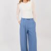 Elegant wide-leg women’s trousers are a perfect choice for everyday wear, work and more formal occasions. Made of high-quality polyester with elastane, they provide comfort, durability and gentle elasticity that allows for freedom of movement. The smooth material gives them a classic and timeless character. The high-waisted style beautifully accentuates the waist and visually lengthens the silhouette, while the long, wide legs add lightness and elegance to the outfit. The trousers are fastened with a zipper and buttons, ensuring a good fit. Practical, side pockets add functionality and comfort. They pair perfectly with both a shirt and blazer, as well as a more casual blouse.