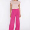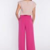 Stylish women’s trousers with a relaxed fit are the perfect combination of elegance and comfort. The high-waisted model beautifully emphasizes the waist and ensures comfortable wear throughout the day. At the front, there are decorative pleats that add chic to the overall look and subtly shape the silhouette. Long, wide wide leg trousers give them a modern, fashionable character and guarantee freedom of movement. The trousers are fastened at the front with a zipper and button, ensuring a stable fit. Equipped with classic front pockets and faux back pockets, they combine functionality with aesthetics. Additionally, they have belt loops, allowing for a stylish addition to the outfit. This versatile model will work perfectly in both casual and more elegant outfits, pairs well with a shirt, blouse, or fitted top.