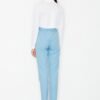 Women’s trousers with a decorative crease at the waist and a sash to tie. Slide pockets on the sides. Trousers with a zip.